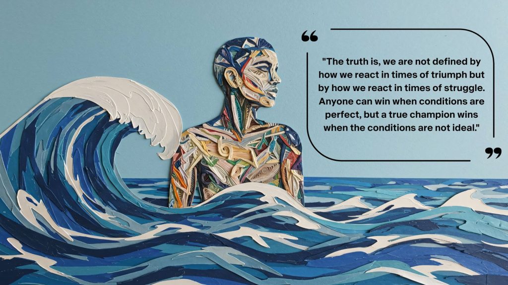 “The truth is, we are not defined by how we react in times of triumph but by how we react in times of struggle. Anyone can win when conditions are perfect, but a true champion wins when the conditions are not ideal.”